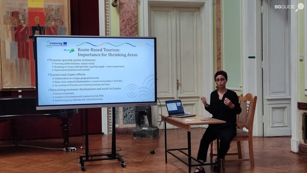 Десислава Минчева-Йорданова, председател на Национален туристически клъстер „Българският пътеводител“, представи накратко целите на проект DANUrB+ и сподели за една от най-важните проектни инициативи – Етикета за качество DANUrB, който е важен инструмент за местно/регионално развитие, изграждане на общности, окуражаване на местната културна идентичност и др. чрез установяване на добри практики по поречието на река Дунав, а след това проведе и кратка работилница за валоризация на материално и нематериално наследство и подобни инициативи.