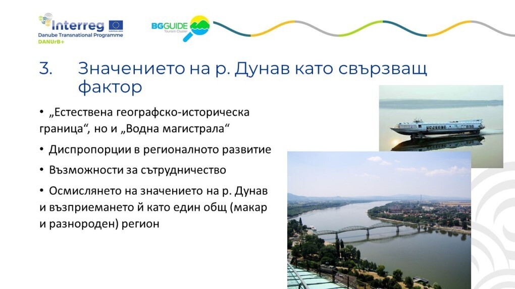 Проект DANUrB+ беше представен, акцентирайки върху ролята на местните общности и образователните институции в свиващите се градове по поречието на река Дунав. Бяха представени и подробно обяснени критериите на етикета за качество DANUrB+, във връзка с планираните училищни инициативи. Най-новите тенденции в туризма и творческите индустрии бяха посочени като фактор за развитието и съживяването на свиващите се градове. Има много предизвикателства в настоящата ситуация в световен мащаб, не само в дунавския регион, и е необходима адаптация, за да се отговори на новите очаквания на туристите и посетителите. Не се използва пълният потенциал на Дунав, има много диспропорции (напр. големите и богатите столици срещу малките, свиващи се и бедни градове), но свързващата сила на реката трябва да се капитализира, напр. като воден път, като материално или нематериално наследство (римско наследство, традиции, фестивали и т.н.), като общ международен туристически маршрут и др.